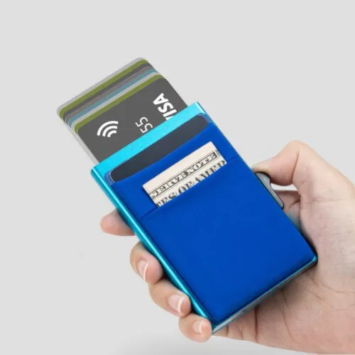 Minimalist Aluminum Pop-Up RFID Wallet - Blue